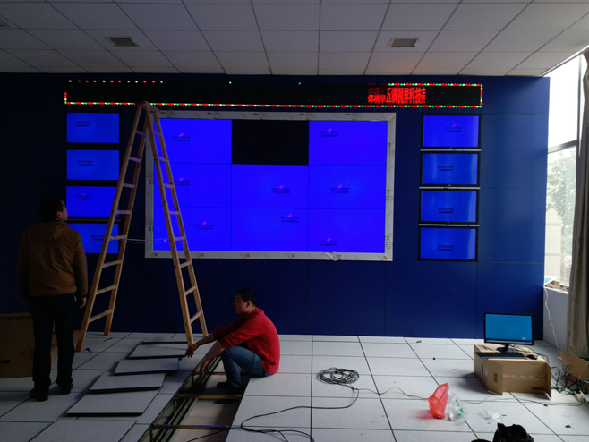 項目簡介:本項目采用“五洲視界”品牌46寸窄邊5.3mm液晶拼接屏,按照3行3列壁掛安裝,外加8塊32寸五洲高清液晶 監視器安裝在兩側;控制設備采用“五洲視界”品牌外置多屏拼接處理器,解決了信號廣、信號雜、遠距離傳輸、項目復雜的難題。大屏顯示絢麗,色彩逼真 ,高效率達標,實現了工廠遠程監控管理的目標,獲得了客戶的高度肯定和稱贊。