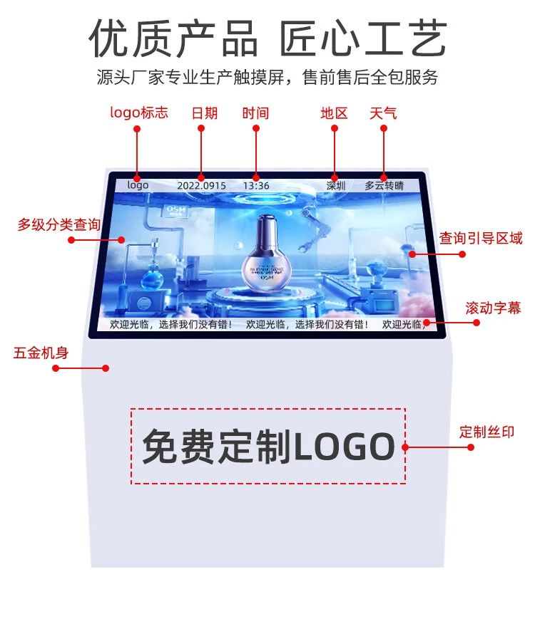 總的來說,這款32/43/55寸L型斜面觸摸查詢一體機,不僅是一款高科技的廣告展示設備,更是一種創新的營銷方式。在商場展廳中,它將以其獨特的魅力,為商家和顧客帶來全新的體驗。