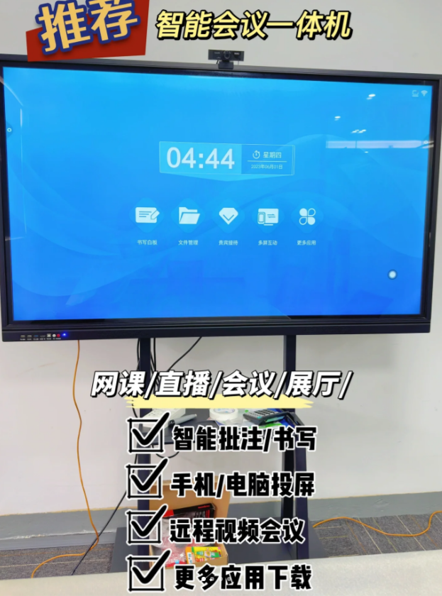 文檔顯示。例如PPT播放,Wrod文件注釋和會議演示,以前會議用投影儀,你必須帶上一臺電腦,數據線連接那樣會耗費很長的時間,在整個過程中還擔心斷線,還要關掉窗簾。但是使用相同屏幕的會議一體機,內置無線功能,支持電腦與手機連接電腦贏取系統和Mac,手機Android和ios完全兼容。會議一體機除以上的操作外,某內置的會議電子白板功能,更能根據會議的需求,隨時隨地的進行會議現場討論計劃,就像用粉筆在黑板上寫字一樣簡單,所以會議一體機其實并沒有那么復雜,它更會使會議簡單順利進行
