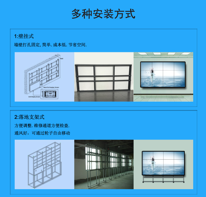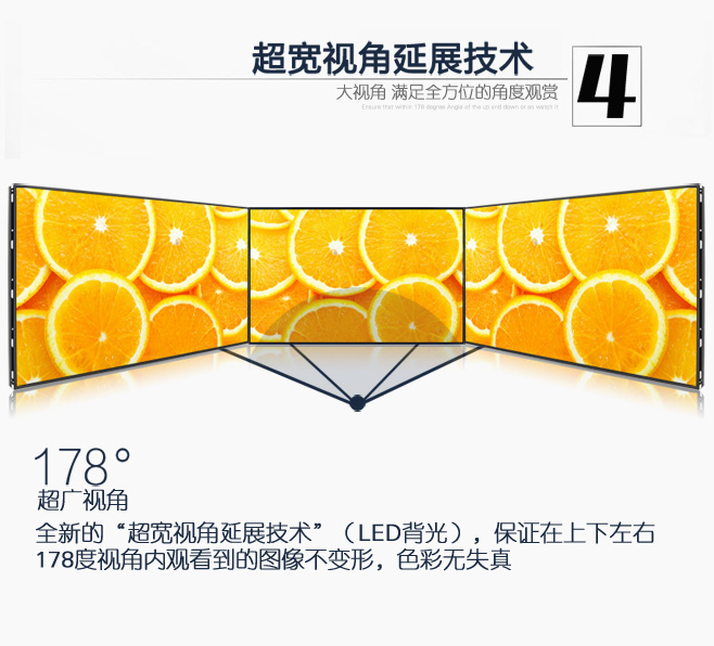 采用三星獨有DID液晶顯示屏,它將目前最卓越的DID高清晰度、高亮度與高色域的液晶顯示技術、嵌入式硬件拼接技術、多屏圖像處理技術、信號切換技術等合為一體, 全面支持圖像的跨屏、漫游、畫中畫、疊加、縮放等高端顯示功能。控制器為顯示屏量身定做,專機專用,能最大限度的發揮顯示單元的效能。液晶拼接幕墻,圖像清晰,畫面逼真,顯示內容豐富多樣,能給用戶最大的自由設計空間,提供令人震撼的顯示效果。形成一個擁有高亮度、高清晰度、低功耗、高壽命、無輻射,先進的液晶拼接幕墻顯示系統, 相信它定能為廣播電視業數字化的全面發展添磚加瓦,為行業用戶帶來全新的超大屏視覺體驗。