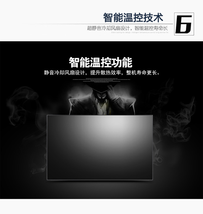 自動根據設定的工作溫度和實際機器溫度,控制風扇的運轉、降低噪音、節約能耗、提高液晶拼接單元的穩定性和可靠性