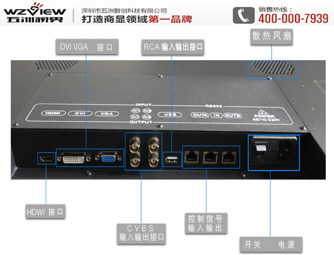 輸入信號:1 路視頻、1 路VGA、1 路DVI、1 路HDMI