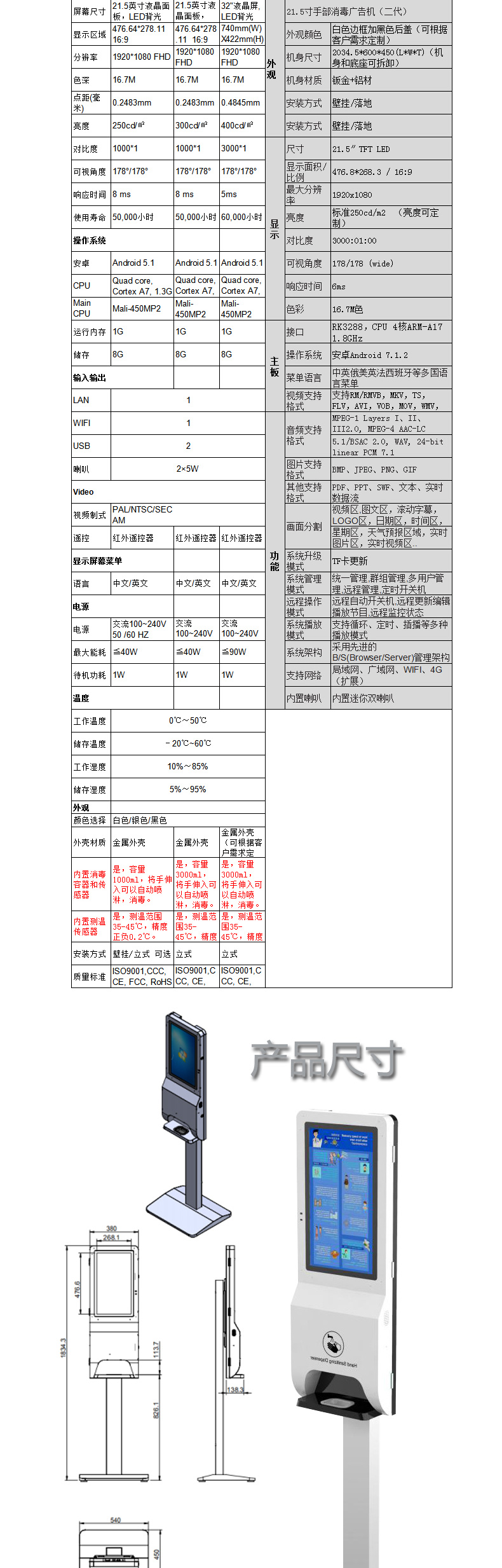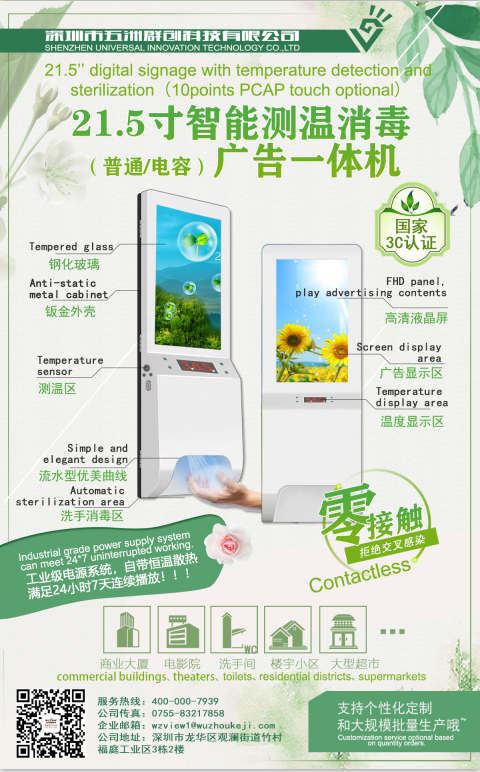 21.5寸智能測溫消毒廣告免接觸洗手液一體機壁掛款
