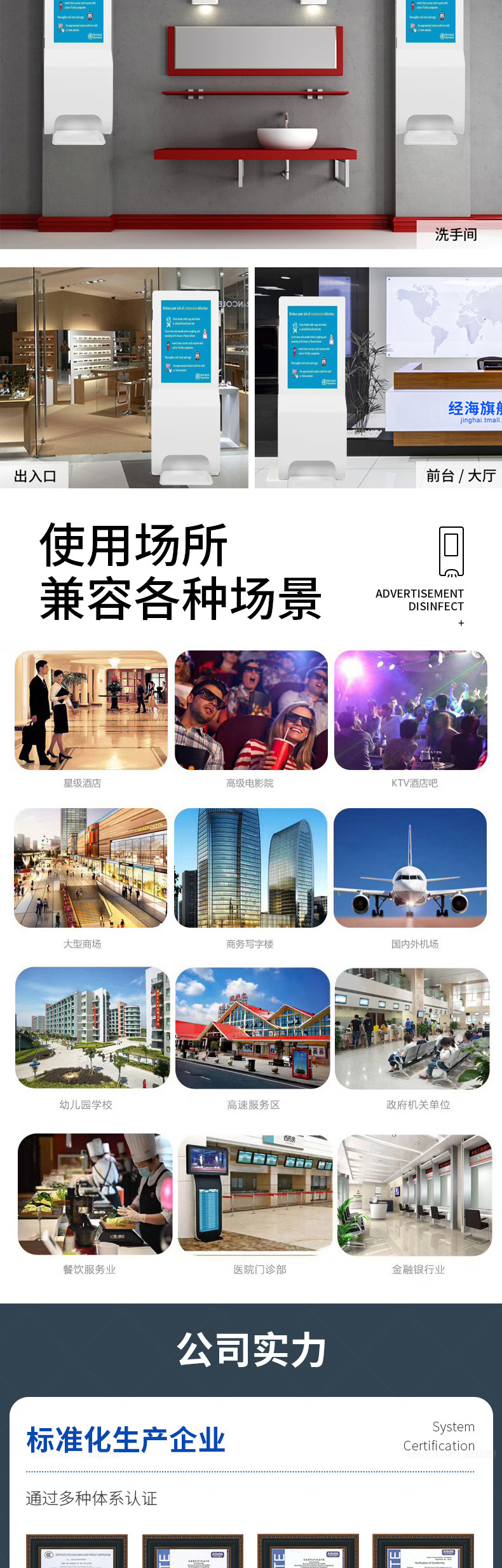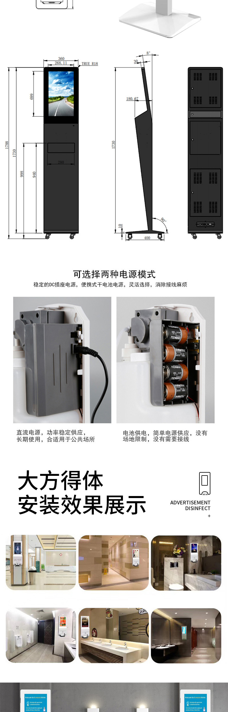 • 21.5寸智能測溫消毒廣告免接觸洗手液一體機壁掛款