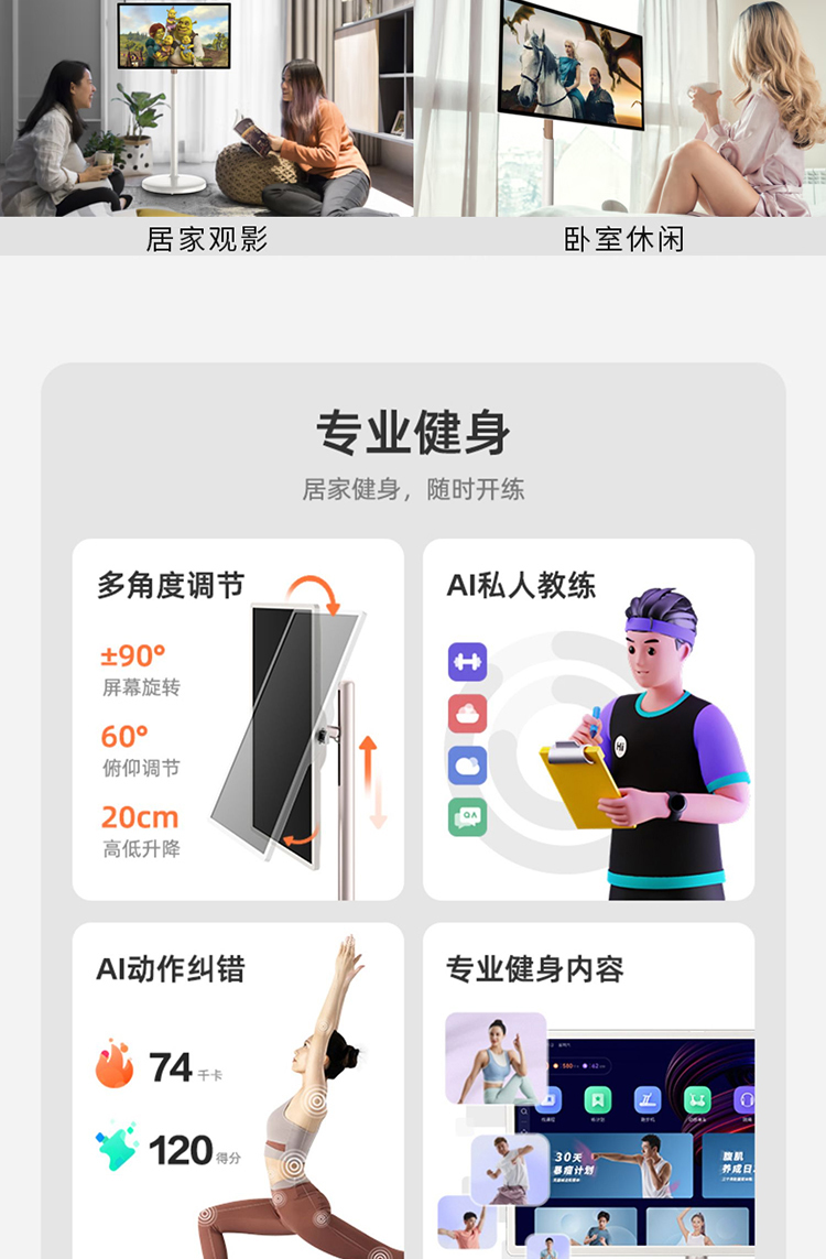 • 隨心屏閨蜜機移動智慧屏無線投屏直播機觸摸可移動電視健身大屏智能網課神器顯示器