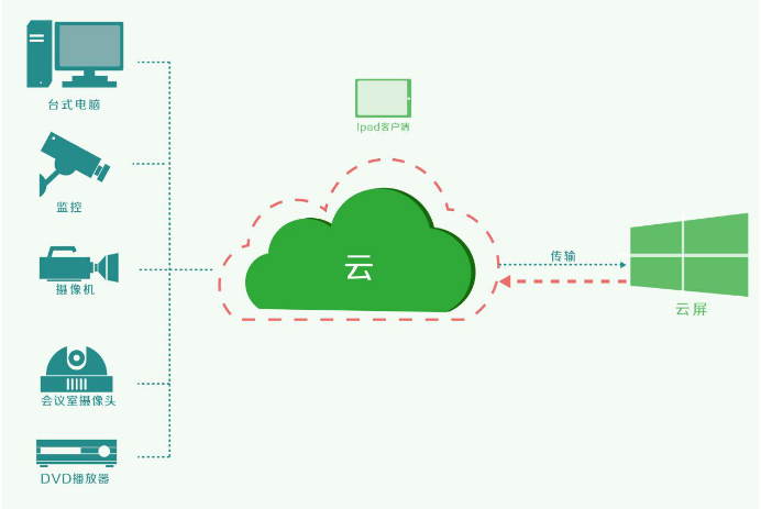 手持一臺Pad,就可在一幢樓內后有的云屏上任意調取視頻信號顯示;坐在辦公室內,就可同步觀看與操作中心大屏的圖像;開會時電腦接上網絡就可任意把簡報推送到屏上;來自各地的海量監控視頻任意接入與聯動;超高分大數據圖像可視化顯示……云拼接將為大屏拼接帶來無限的應用可能,它將開啟大屏拼接應用的新藍海。
